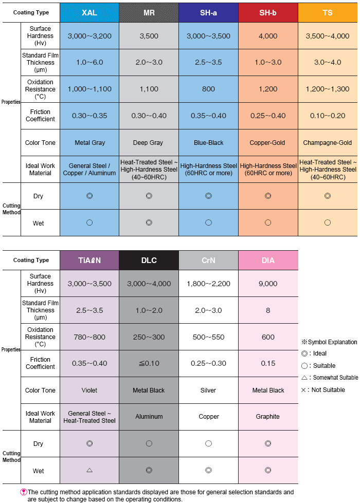End Mill Coating Types / Features