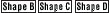 Tolerances of dimension F and A vary depending on the shape.