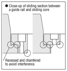 ● Example of 8mm Heel Guide Rails and a 5mm Thick Flange Slide Core