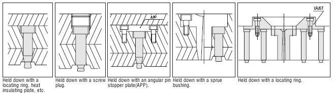 | Fixed side type | Type used without combining ejector pin. For fixed side. | ![]() |
