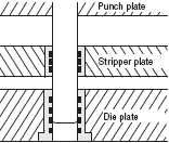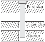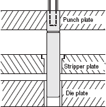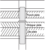 ●Because the guide pin is fixed to the stripper plate which is close to the blade(punch, die), the shaft