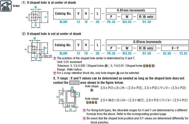 | Block die type | Material | Type | Without scrap retention | With scrap retention | ||