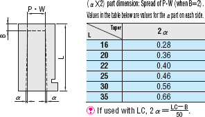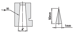 indicates a taper in which the diameter increases by 1mm over 50mm of length.
