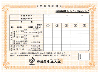 *The Quality Guarantee Certificate is attached to carbide products only. The accuracy standards for steel products differ from the above. For further details, refer to the relevant pages.